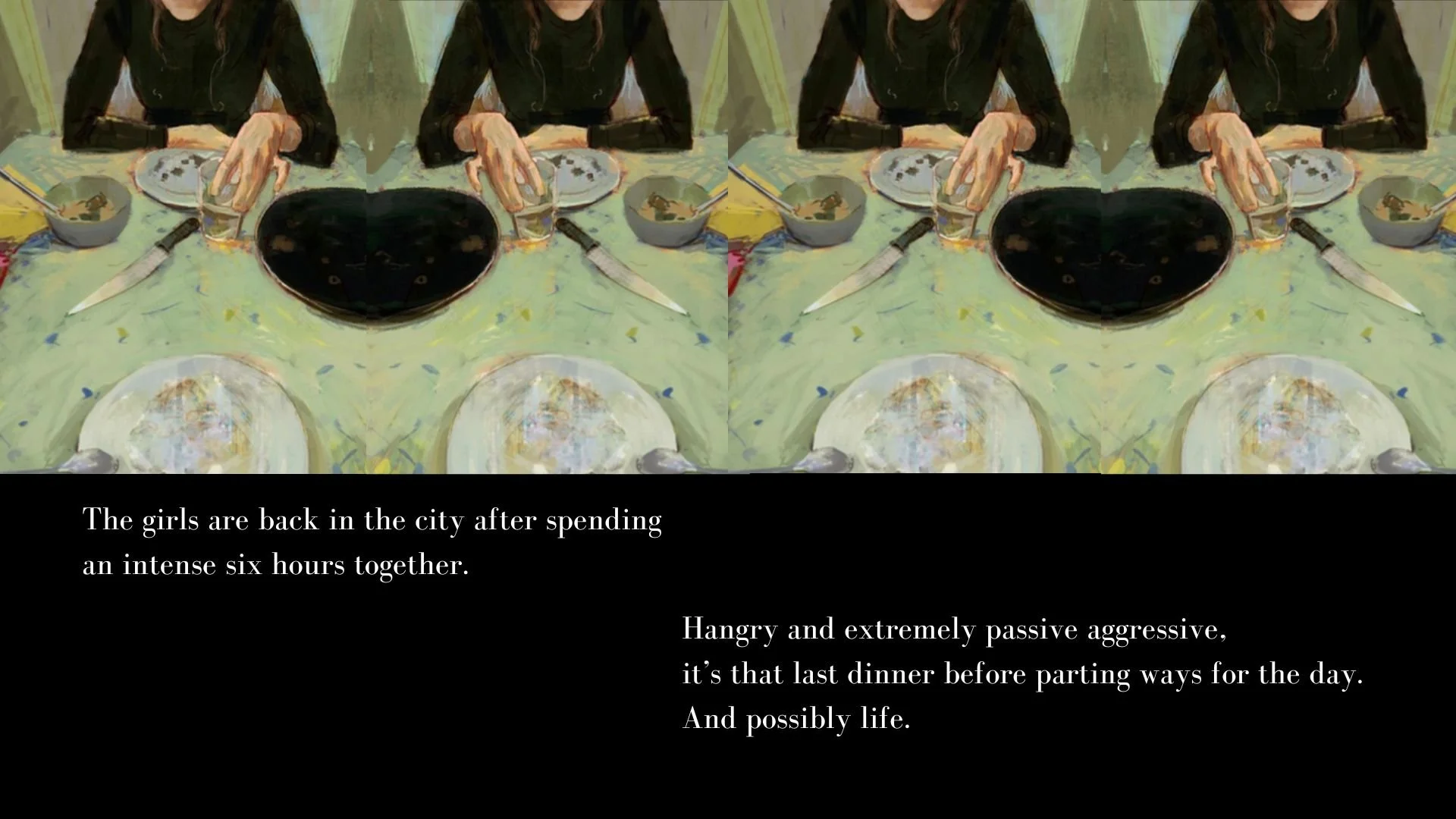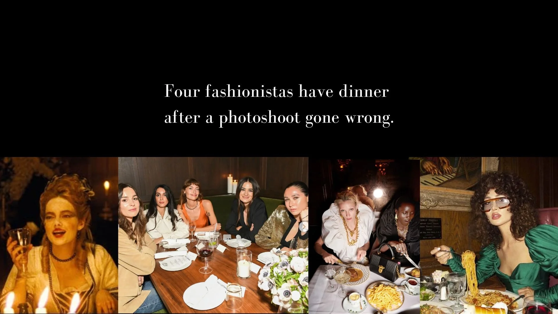 Four fashionistas, stuck in the English countryside after a disastrous photo shoot, reluctantly continue their day with dinner at The Running Cow.